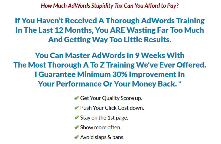 If you do the simple assignments, document your progress, and don’t improve your Google campaign performance by 30% at the very least I’ll give you your money back.