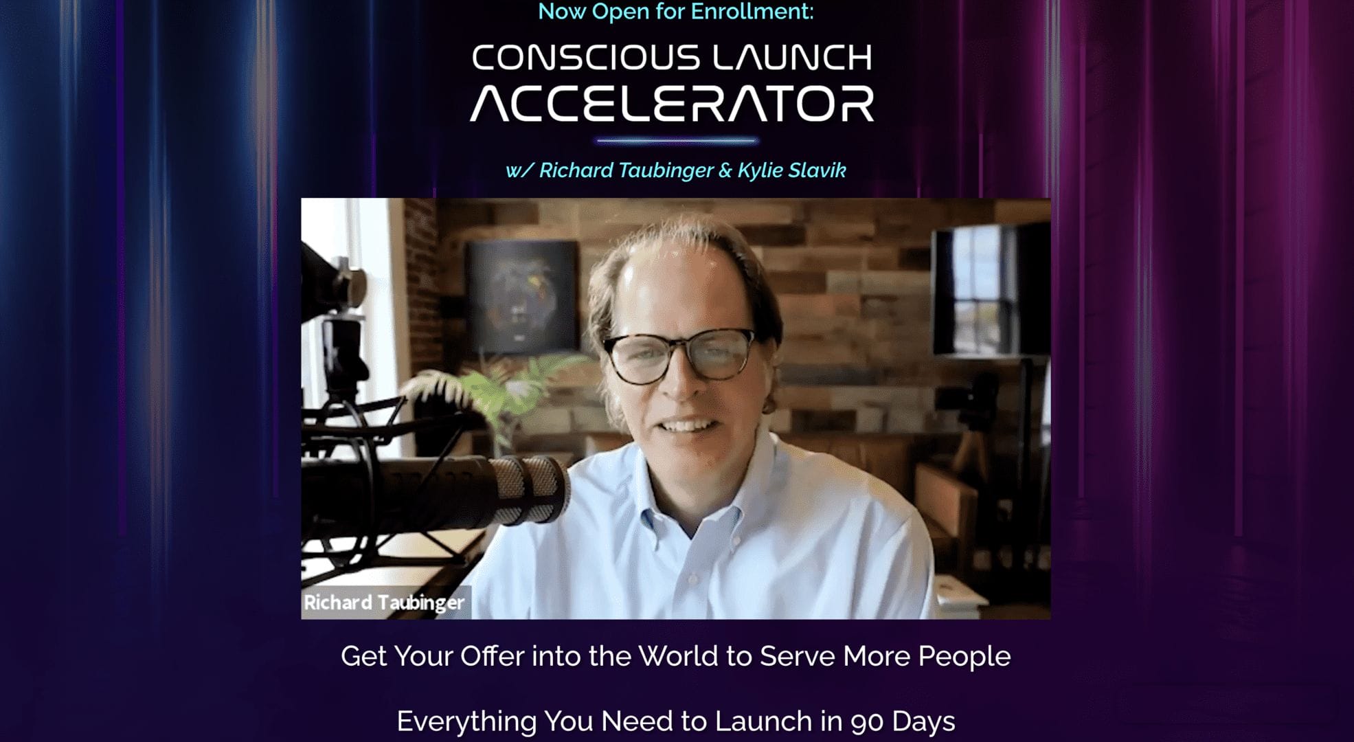 In order to help you tell your story, attract ideal clients, and launch your offer, you will receive 8 training modules taught by Richard Taubinger & Kylie Slavik. These trainings will be your foundation to help you accelerate the launching process. Each training will help give you both strategy & actionable steps through your first (or next) online launch. Each module comes complete with downloadable worksheets & checkpoints to help you dive deeper while focusing on the most essential elements of launching online.