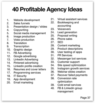 Plus I’m Going To Give You My Own Private List Of 40 Profitable Agency Ideas