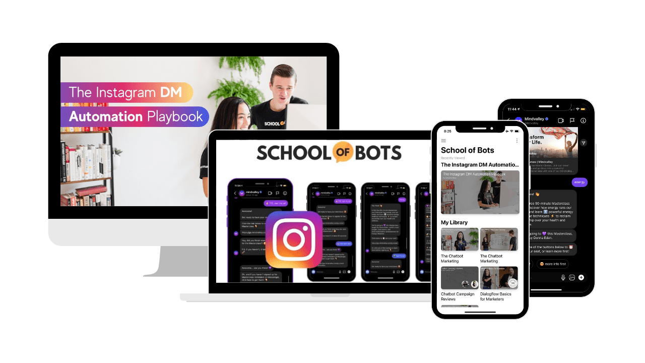 The IG DM Automation Playbook is a 50+ lesson online course taught by School of Bots Co-Founder and Chatbot Marketing Expert Natasha Takahashi.
