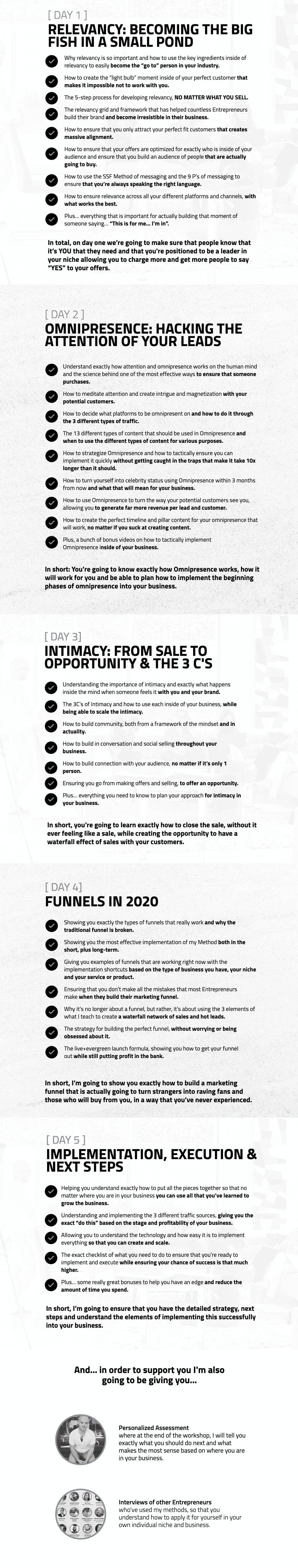 2). An action plan and strategy that you’ve developed with me, each and every one of the 5 days that we spend together.