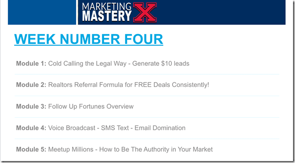 4 WEEK MASTERCLASS “HOW TO MANIPULATE THESE 27 – ADVERTISING CHANNELS TO GENERATE MORE CONTRACTS WITH A CUSTOM MARKETING PLAN TAILORED TO FIT YOUR BUDGET FROM $500/mo – $25K/mo AND BEYOND!” Here’s What’s Inside This 4 Week Masterclass…