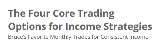 The three favorite monthly trading strategies Bruce uses monthly to generate consistent income. In addition, Bruce will help you choose the right strategy to use