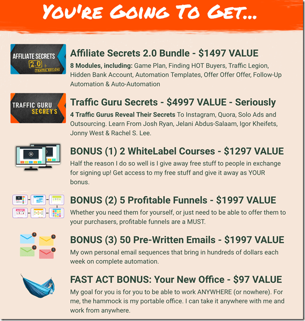 Serious About Quitting Your 9-5?’ Module 1: Your Game Plan Structuring your empire A deep dive into the “big picture” of affiliate marketing. How to get in the right mindset so that everything you touch turns to gold. Module 2: Finding HOT Buyers who’s got the $$ and How to find them The most important
