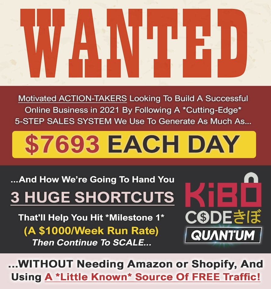 Put it like this… This time round, and like we have mentioned already, we are 100% focused on FREE TRAFFIC and SPEED to enable you to get up and running and start making your first sales as quickly as possible with as little risk as possible. …which in turn will give you the confidence to persevere and continue to build your business. We are taking all the guesswork out of the process so you can get going with it as quickly as possible, no matter what type of experience you have up until now. Let’s run through the SEVEN components of Kibo Code QUANTUM to show you how this all comes together and how YOU can take advantage of this incredible business model… |