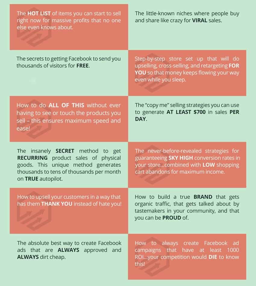 - Don’t worry about sourcing, shipping, billing, creating a website, driving traffic, or any of the “grunt work” that’s been holding you back.
