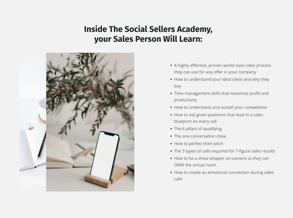 If your sales person meets the milestones and benchmarks set during the 6 month program, they will become a Social Seller Academy Certified Seller.