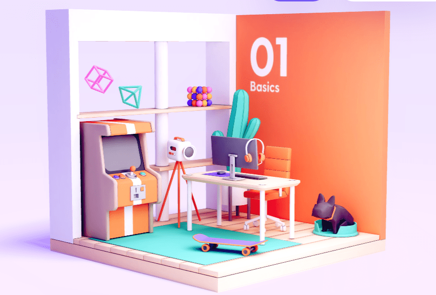 Create your first scene and understand fundamentals like cameras, geometries, materials, textures.