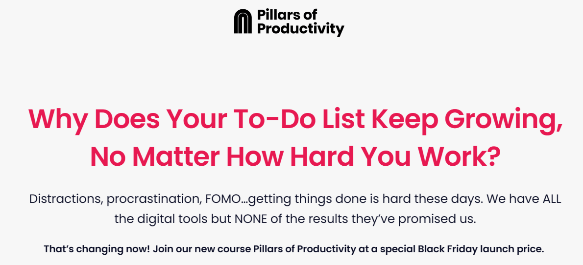 Here’s what you’ll be learning and doing in Pillars of Productivity: