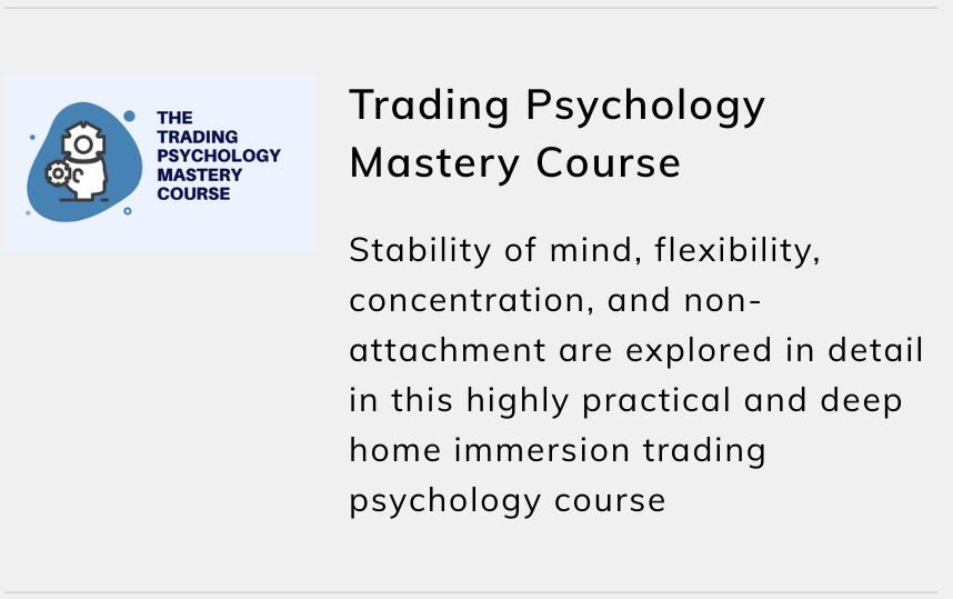Stability of mind, flexibility, concentration, and non-attachment are explored in detail in this highly practical and deep home immersion trading psychology course.