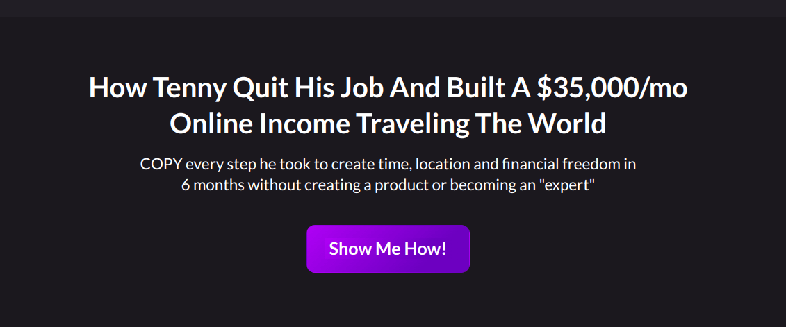 Learn the exact strategy that allowed Tenny to build total time, location and financial freedom over the course of just 6 months and ensure he would never have to rely on a job or live life inside the system ever again.