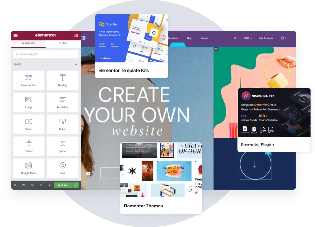 In addition to template kits, Elementor offers the option to create a personalized kit to use each time you build a new site comprising the elements you need. You can also adapt each element to the relevant site.