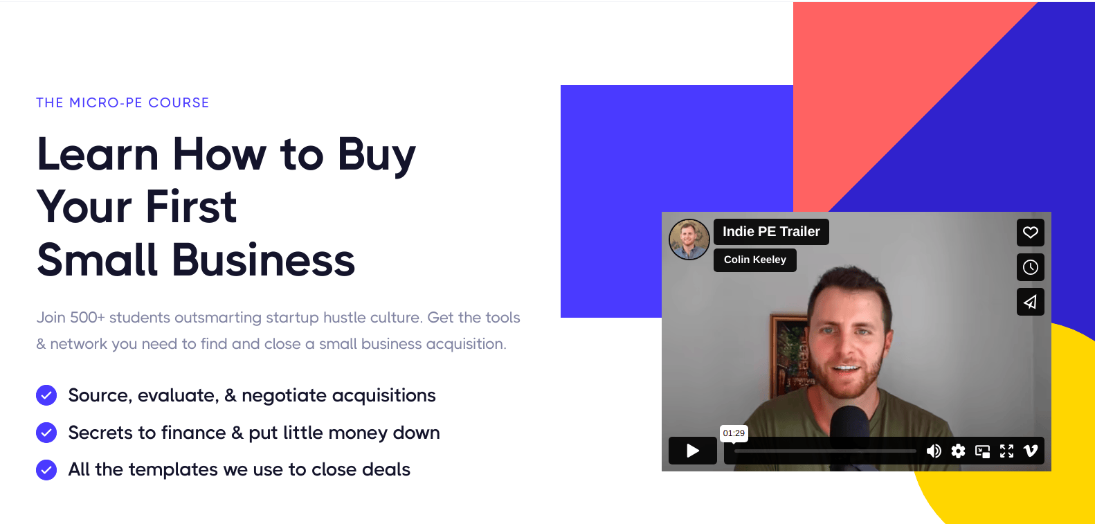 Join 500+ students outsmarting startup hustle culture. Get the tools & network you need to find and close a small business acquisition.