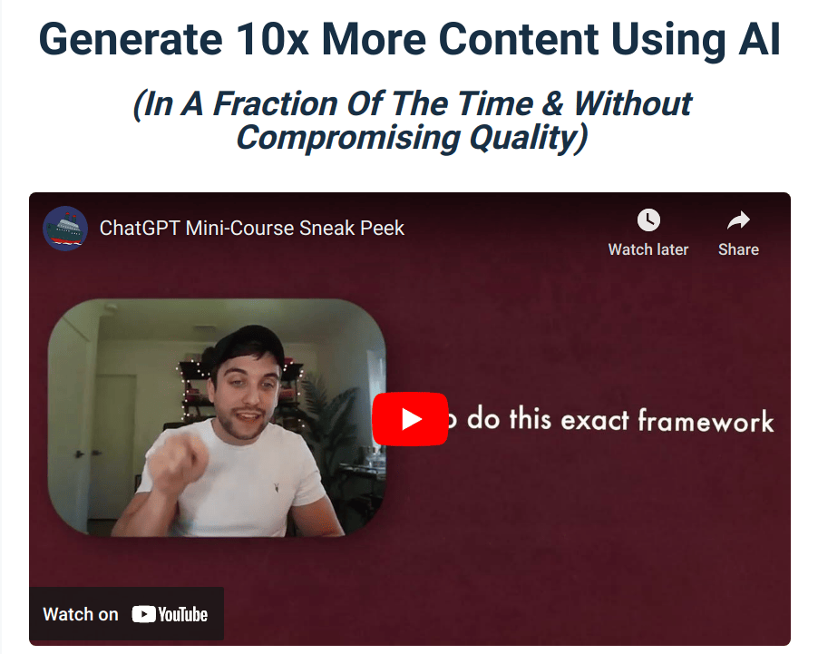 Unlock a step-by-step guide that will teach you how to train ChatGPT to generate dozens of writing ideas and headlines using our proven Ship 30 Lean Writing Framework.