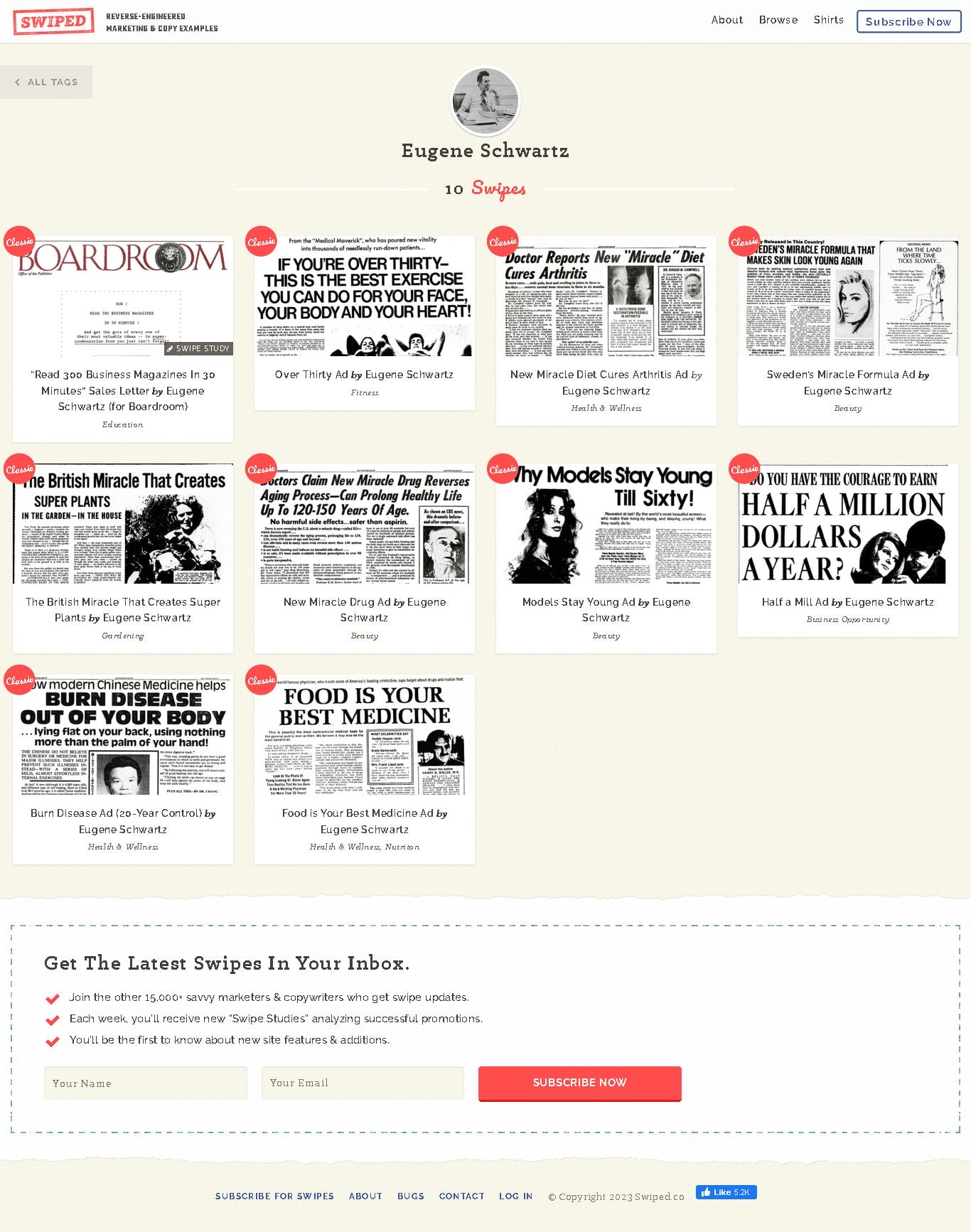 To learn more about the site & “swiping”, check out my one on one interview with copywriter Kevin Rogers here.