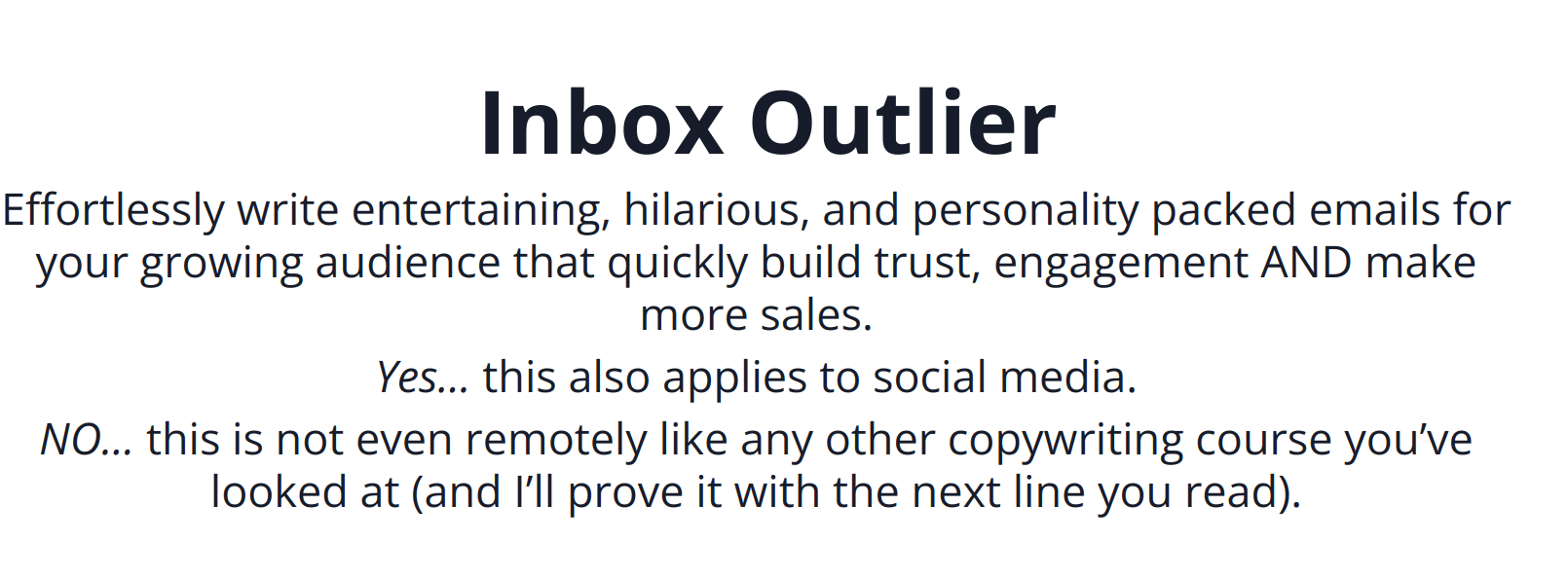 Inbox Outlier shows you how to write entertaining, hilarious, and personality packed emails for your growing audience that quickly build trust, engagement AND make more sales.
