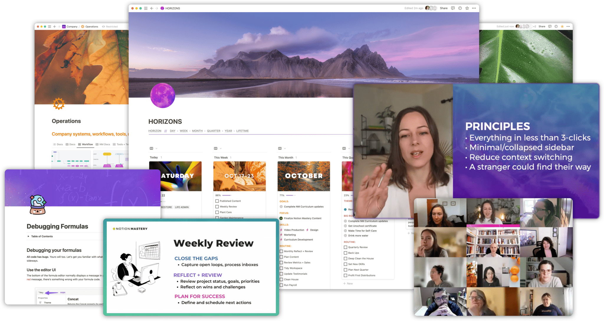 We’ve condensed our best practices and workflows into a robust online course and community to support you through the process of going from scattered to streamlined with Notion.