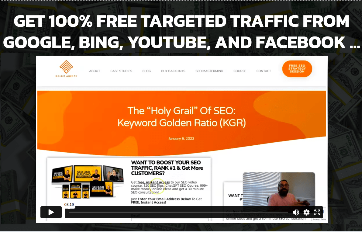 Discover And Use My Unique Twist On The “Keyword Golden Ratio” Method To Easily Get 100% FREE Targeted Traffic From Google, Bing, YouTube, And Facebook…