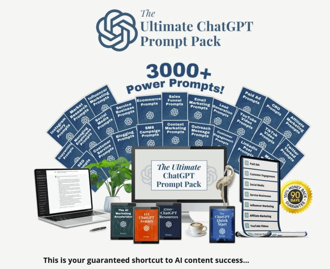 Instantly create all the content you’ll ever need to start or scale your business with over 3000+ proven ChatGPT prompts.