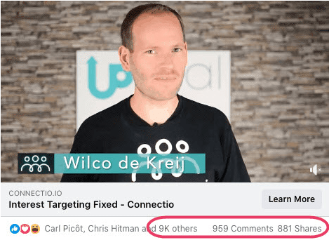 As you can see, it received 959 comments, 881 shares, and over 9K positive reactions…