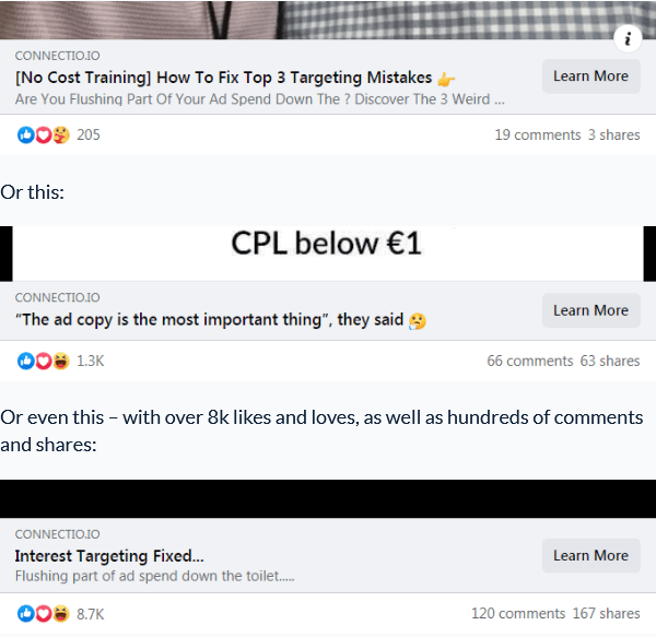 i.e. This unique “ad formula” made me spent over 2 million of my own money on Facebook (hint: because it works!)