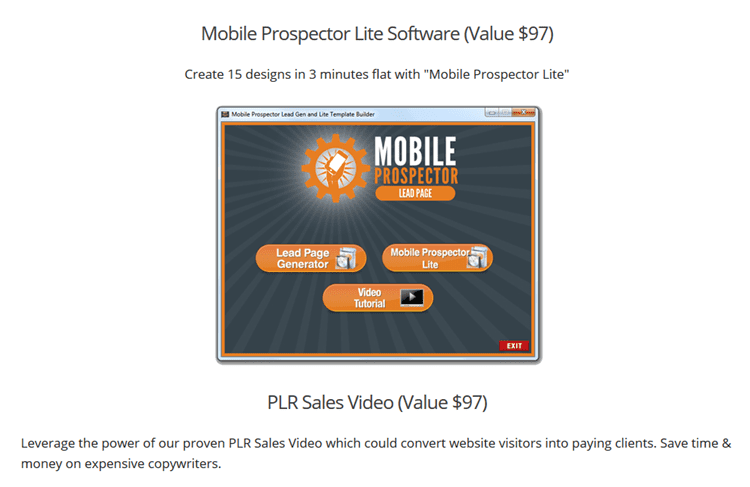 Once inside, you will get INSTANT AND UNLIMITED ACCESS to Mobile Prospector Premium including 15 templates.