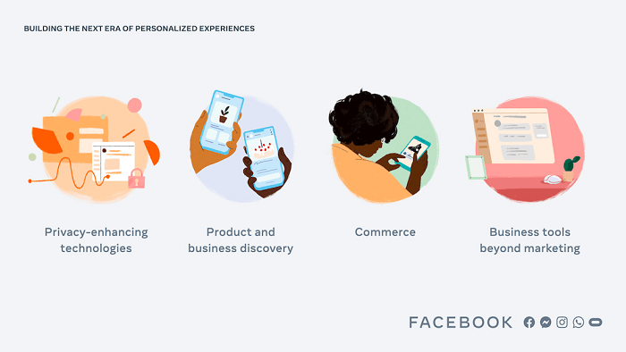 Apple’s ATT update has limited data tracking capacity, and with Google investigating its own variation of the same, Facebook now has no choice but to seek new options, and work to build in new tools which enable optimal targeting and focus within these new constraints. Levy says that Facebook’s working to develop new ‘privacy-enhancing technologies’ in order to minimize the amount of personal information that the platform takes in while still enabling advertisers to focus their promotions with optimal efficiency. Levy also outlines the growing popularity of Facebook’s eCommerce tools: