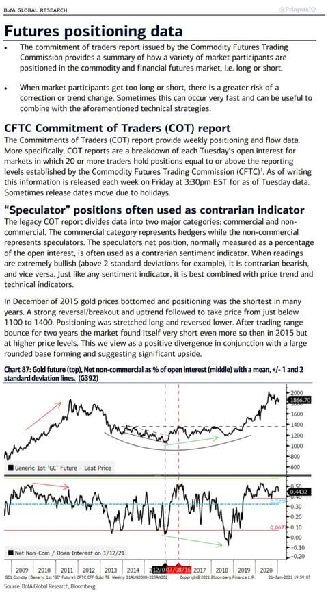 The Commitments of Traders or COT report is a weekly report created by the Commodity Futures Trading Commission (CFTC) quantifying holdings in the U.S. futures and options contracts by different market participants. It is put together by the CFTC from traders disclosures of market positions and covers the futures on grains, cattle, financials, metals, energy, and other commodities along with options.