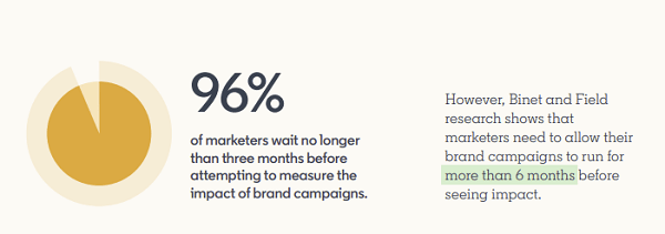 Previously, marketers were investing an estimated 45% of their budget into brand marketing. Today, the recommended split is 60/40 in favor of brand. This doesn’t mean demand generation tactics should be left behind, but generally speaking, marketers should really be leaning into brand-building as a central complement and precursor.