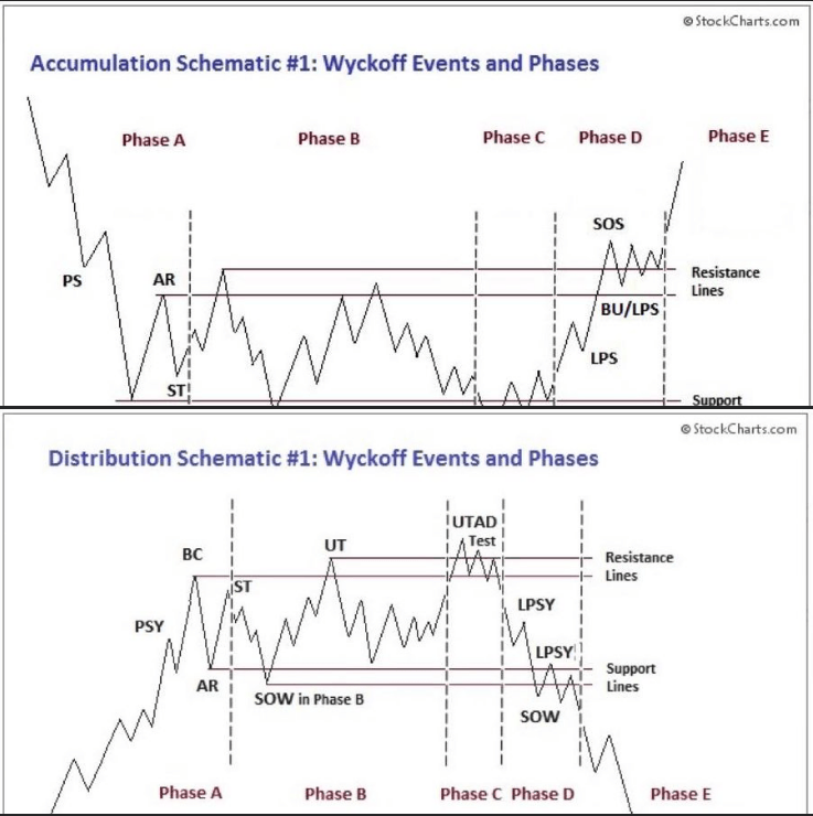 These 5 steps are an overview of the Wyckoff method along with his three laws of price action below.