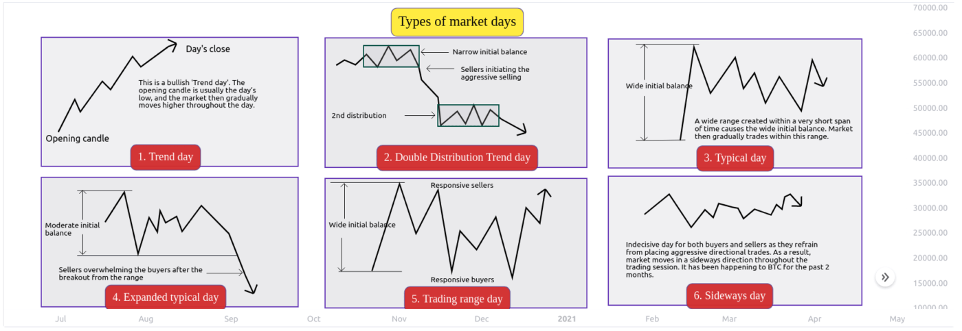 Technical analysis is largely impacted by some very important factors. One of those very important factors is the type of the market day. Analysing the type of the market day correctly can give a potential edge to any trader who is actively trading in either stocks, indexes, cryptocurrencies, forex, derivatives etc.