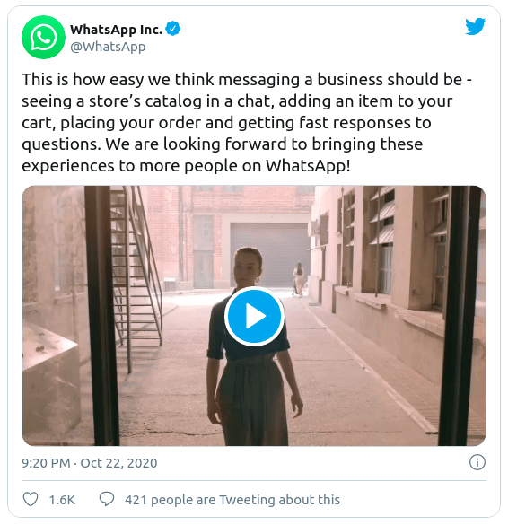 WhatsApp posted this promotional video, regarding its upcoming in-stream purchase features to its official twitter account: